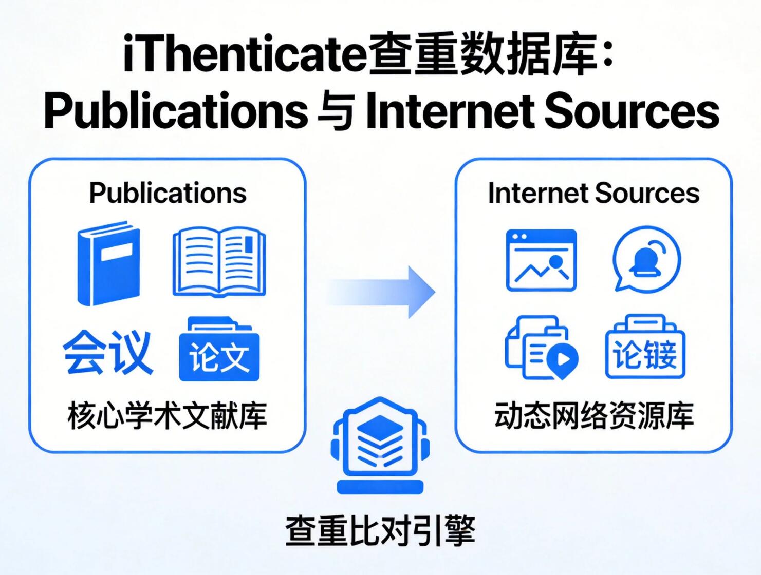 在查看 iThenticate 查重报告时,同学们会发现有几个不同的重复来源,比如 Publications、Internet Sources 等,有不少同学不明白这些来源的含义,比如, Publications是否比来自 Internet Sources 的情况更严重?