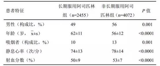但是此类研究最容易忽视不同组研究对象之间的可比性,例如,某研究[2]想证明“长期服用阿司匹林是否可以带来生存获益?”,两组患者的基本情况见表1。